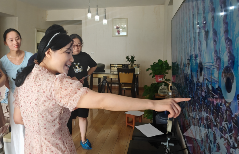 青龍街道現役軍人朱文瀚家屬收看閱兵式