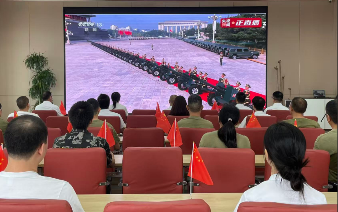 大家聚精會神觀看閱兵式