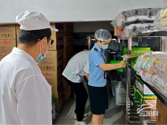 檢查期間,執法人員嚴格核查各學校食堂從業人員健康管理制度、員工培訓制度及健康證明公示落實情況,詳細查閱米、面、油、肉等食品原料的進貨渠道、索證索票和進貨查驗記錄,對餐具清洗消毒記錄進行逐項檢查。同時,執法人員到后廚操作間,全面檢查環境衛生、員工個人衛生、冷藏冷凍設備運行狀況、半成品儲存規范情況,以及廚房、庫房“三防措施”配置狀況,重點核查食品原料是否分區分類、離地離墻存放,食品留樣是否落實專人專柜專管等制度。