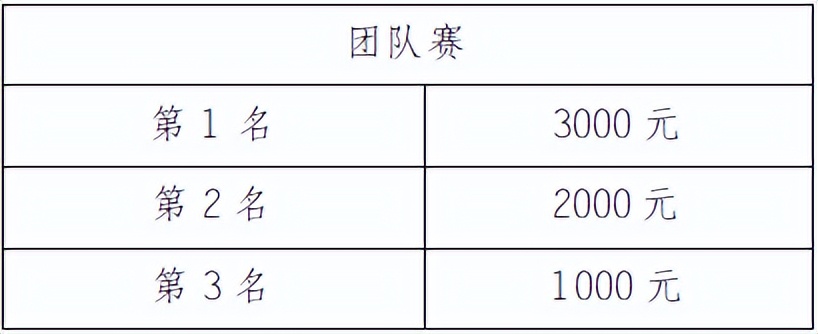需滿足團隊賽最低人數要求的團隊才可參與該獎項排名。取凈成績最好的4名男子選手、2名女子選手成績和作為團隊成績。按團隊成績錄取前三名,如果對應名次團隊運動員發現違規,取消團隊名次,后面名次不遞增。現場安排頒獎儀式,獎金見下表(單位:人民幣/元):