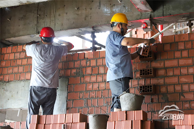 在項目施工現(xiàn)場,建筑主體巍然矗立,工人們有序進(jìn)行砌體施工、內(nèi)外墻抹灰及安裝作業(yè),各崗位施工人員緊張忙碌,現(xiàn)場一派繁忙景象。