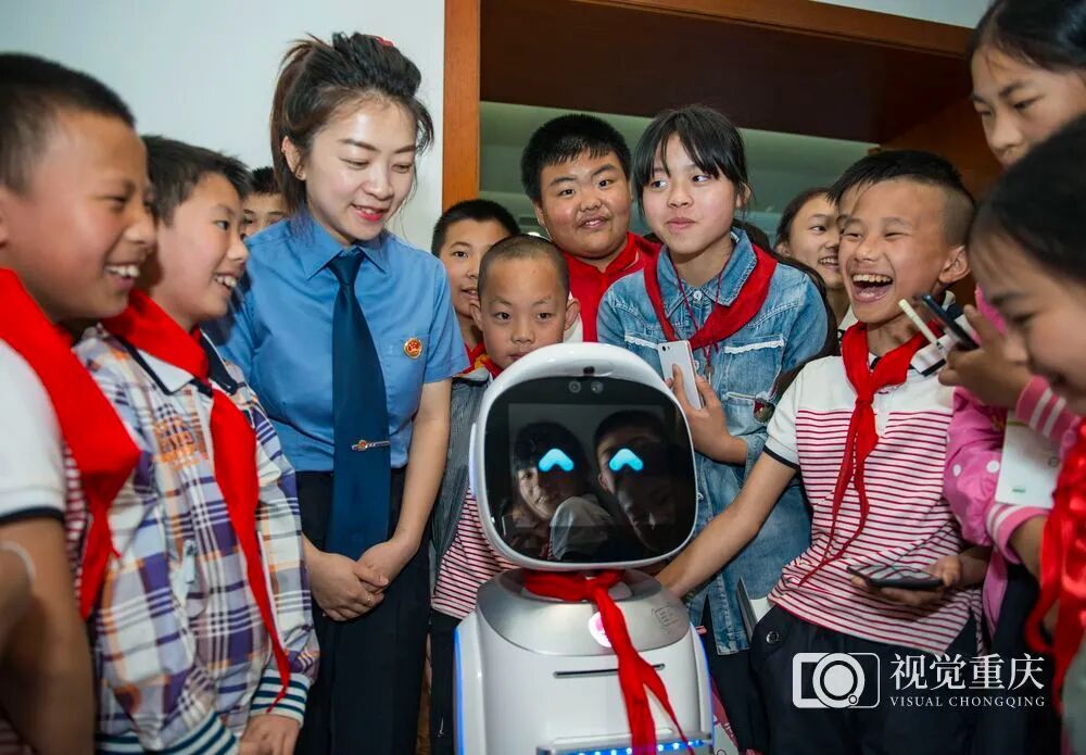 ▲2018年5月31日,市檢察院邀請35名留守、困境兒童參觀莎姐工作室、智慧檢務(wù)中心,并同智能機器人互動做游戲。記者 齊嵐森攝/視覺重慶