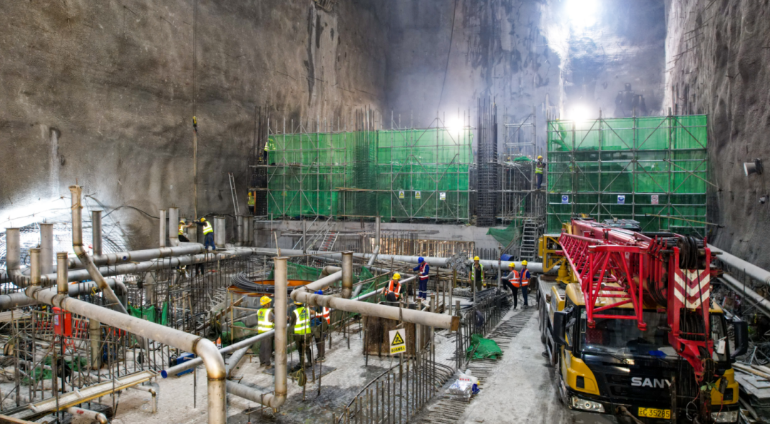 在云陽縣建全抽水蓄能電站地下百米深處的施工現場
