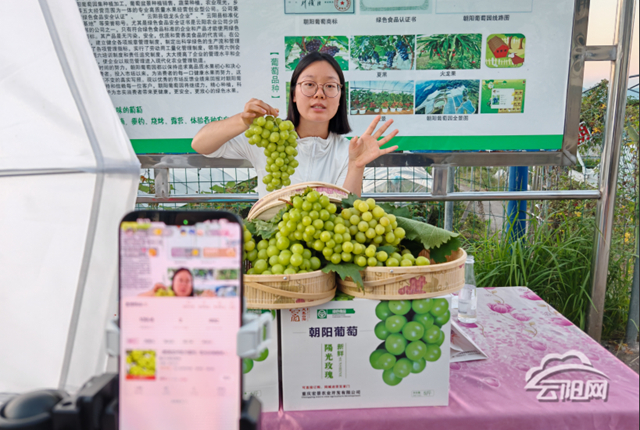 云陽網訊(通訊員 柳秋 祝銀府)“家人們看過來!咱們寶坪鎮的朝陽葡萄,皮薄肉厚、一口爆汁,現摘現發!”10月10日晚,一場別開生面的助農直播在寶坪鎮朝陽葡萄采摘園拉開帷幕。