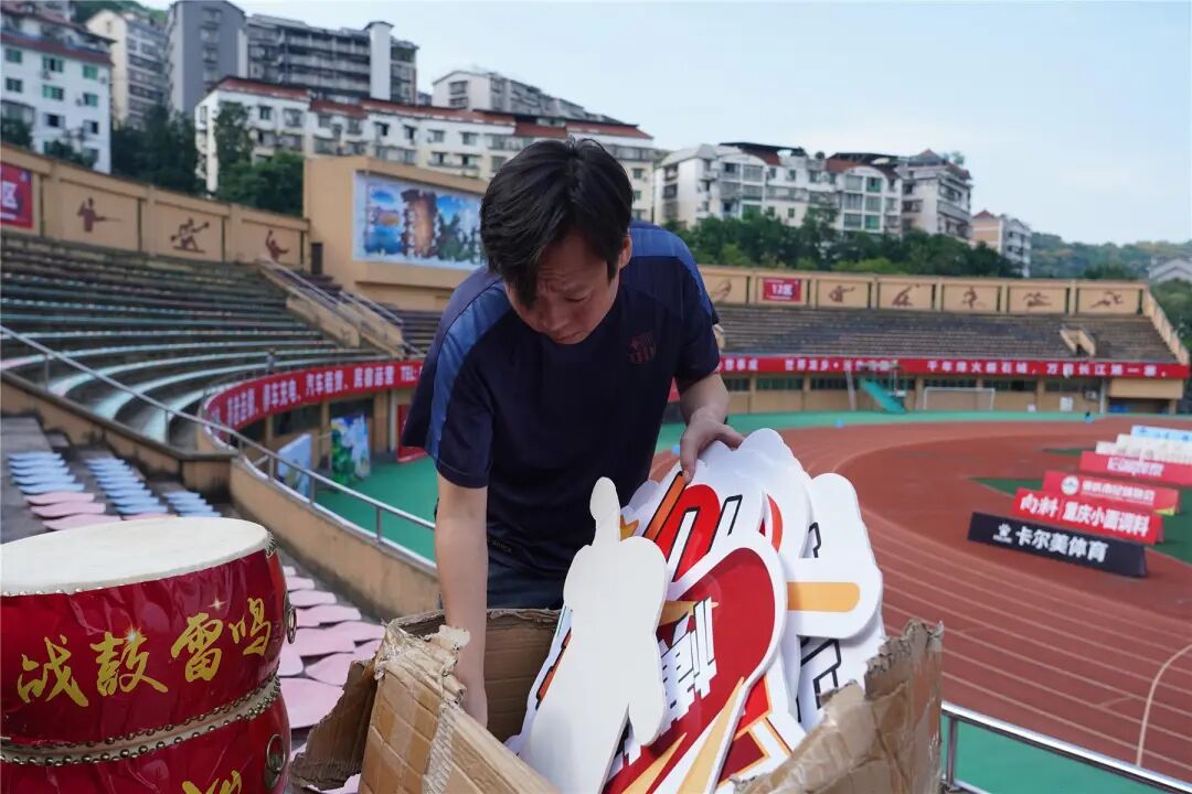 云陽恐龍隊助威團正緊鑼密鼓地做著各項準備工作