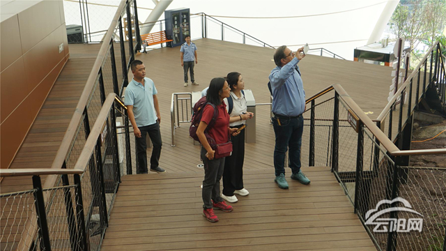 隨后,專家一行前往龍缸景區考察喀斯特地貌奇觀。深達335米的龍缸天坑壁如刀削,與暗河、溶洞等景觀共同構成“自然科學博物館”,其成因演化被科學界視為喀斯特研究的天然實驗室。尼古拉斯?祖羅斯對照地質圖冊感慨:“云陽將中侏羅世恐龍化石群與世界級天坑地貌集于一體,這種復合型地質價值在全球罕見。”陳羽嵐則從評估視角建議:“龍缸的地貌保護可進一步結合文化傳說,探索自然資源與人文元素的融合路徑,為后續再評估積累特色經驗。”考察間隙,兩位專家還與云陽世界地質公園管理人員圍繞遺跡保護、科普創新等內容進行交流。