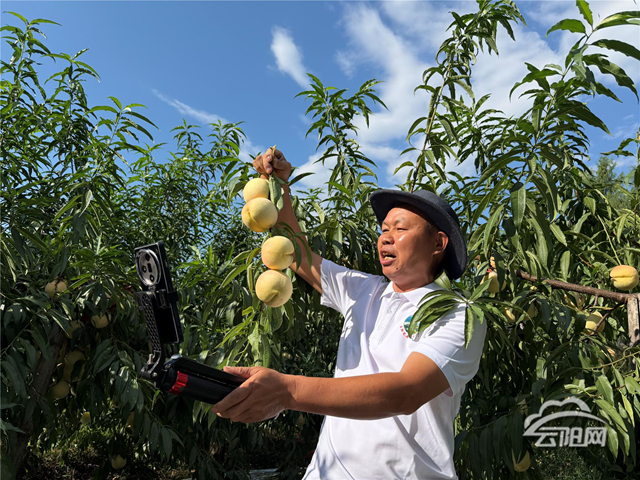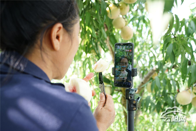云陽網訊(記者 王月園)近日,渠馬鎮促進村園雋桃園基地熱鬧非凡,迎來了一群特殊的“客人”——渠馬鎮本土主播們。他們受邀走進果園,以現場直播帶貨的形式,為渠馬冬桃的銷售插上“云翅膀”,讓渠馬冬桃通過網絡走向全國,成為助農增收、推動鄉村振興的強勁動力。