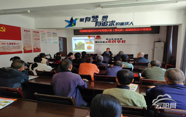 云陽網訊(通訊員 牟聯全)為筑牢柑橘黃龍病防控屏障,切實保障果農收益。近日,紅獅鎮成功舉辦柑橘木虱(黃龍病)監測防控技術培訓會。本次培訓以“智能監測早預警,綠色防控保豐收”為主題,吸引了50余名柑橘種植戶、果園管理人員及農業技術骨干積極參與。
