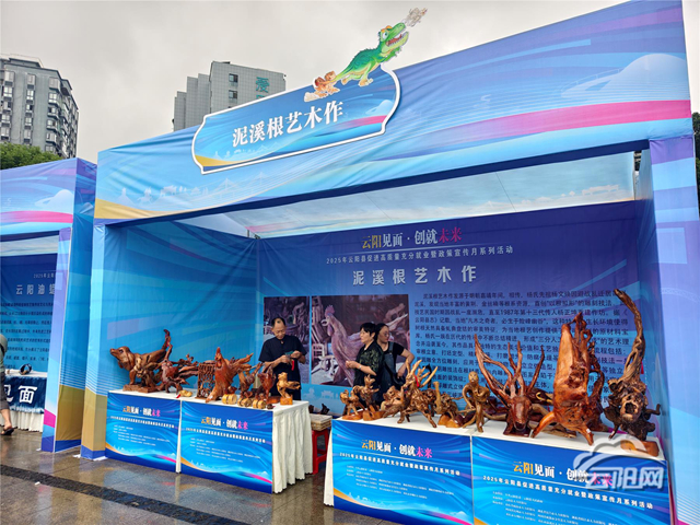 泥溪鎮(zhèn)坐擁豐富的山林資源,當(dāng)?shù)亟橙艘蕴烊豢菽尽涓鶠樵希瑧{借“三分人工,七分天成” 的創(chuàng)作理念,將原本形態(tài)各異的根材巧妙構(gòu)思、精心雕琢。展出作品中,既有再現(xiàn)鄉(xiāng)土生活的 “農(nóng)耕場景”,也有靈動傳神的 “花鳥瑞獸”,更有融入三峽文化元素的 “峽江風(fēng)情” 系列。匠人巧用根材的天然紋理與彎曲形態(tài),讓每一件作品都獨一無二,既保留了自然的野趣,又蘊含著深厚的人文情懷。