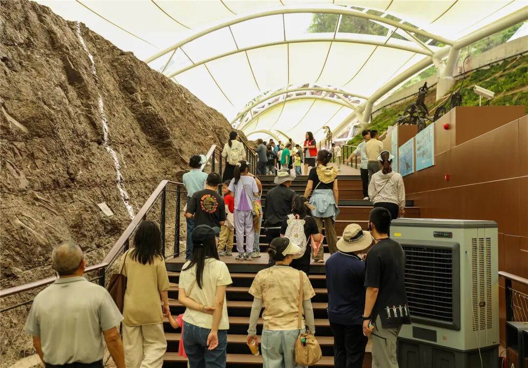 “看到恐龍化石墻還是比較震撼,密密麻麻的化石,就像看到億萬年前的恐龍復活一樣?!庇慰蛥敲懒岣袊@道。來自萬州的游客唐鳥說,專門帶孩子前來,就是為了近距離了解生物演化歷史,云陽便利的地理位置和獨特的資源是吸引他們的關鍵。