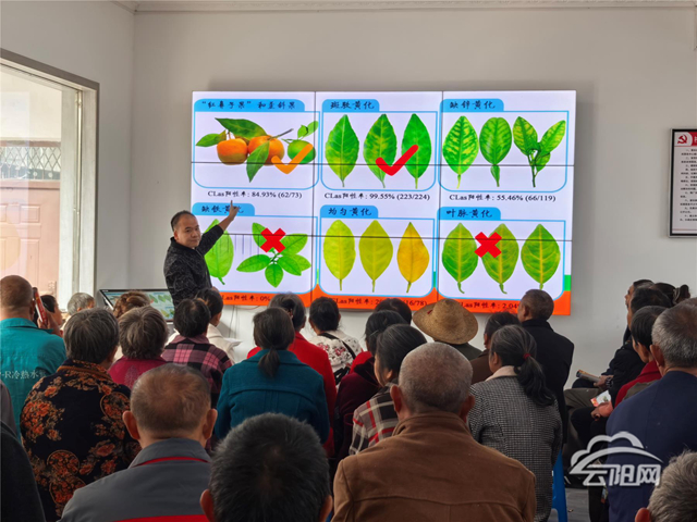 云陽網訊(通訊員 熊中平 蔣毅)“大家看,這灰褐色的小蟲就是柑橘木虱,停歇時和枝條成45度角,它可是傳播黃龍病的‘元兇’……”近日,云安鎮邀請云陽縣農委農技專家走進云安鎮毛壩村,開展柑橘木虱防控技術培訓,50余名果農現場參訓學習。作為當地柑橘種植大村,毛壩村千畝柑橘園是村民增收致富的核心產業,而柑橘木虱引發的黃龍病、煤煙病,一直是橘農們的“心頭憂”。