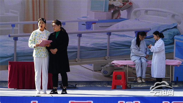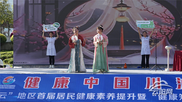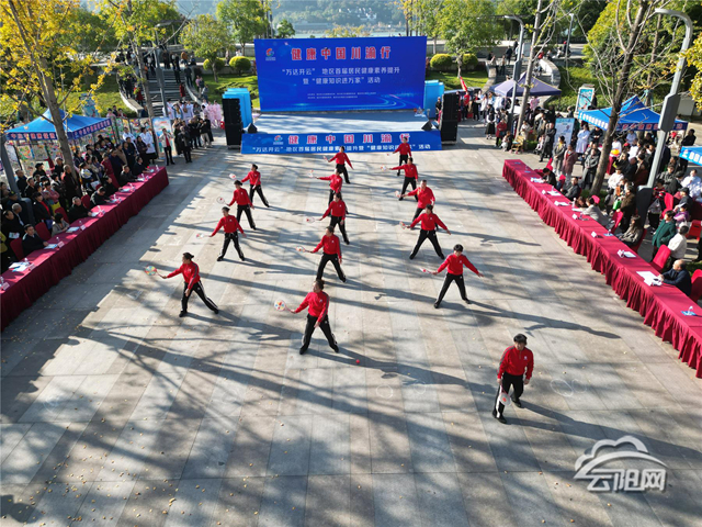 儀式結(jié)束后,精彩的科普展演輪番上演,點燃全場熱情。云陽縣北城小學(xué)30名學(xué)生身著亮色運動服帶來花式跳繩表演,繩子在他們腳下翻飛如彩虹,單跳、雙跳、交叉跳、多人同步跳輪番切換,身姿輕盈如燕,伴著歡快的節(jié)拍躍動,滿場的活力與朝氣感染著每一位觀眾;云陽縣老年人體育協(xié)會30人組成的柔力球表演陣容整齊,隊員們手持彩球,在音樂中舒展身姿,拋、接、繞、轉(zhuǎn)動作行云流水,剛勁中透著柔美,將力量與韻律完美融合;15名表演者身著飄逸彩衣跳起彩帶舞,五彩彩帶隨舞步在空中劃出優(yōu)美弧線,時而如彩蝶翻飛,時而如溪流婉轉(zhuǎn),靈動的舞姿展現(xiàn)出群眾對健康生活的熱愛。萬州區(qū)、達(dá)州市、開州區(qū)、云陽縣精心選送的4個健康科普節(jié)目,以情景劇等通俗易懂、寓教于樂的形式傳遞健康知識,臺詞詼諧接地氣,表演生動有感染力,贏得現(xiàn)場觀眾陣陣掌聲與喝彩。