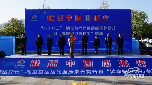 云陽網(wǎng)訊(記者 曾麒麟)11月13日,健康中國川渝行“萬達(dá)開云”地區(qū)首屆居民健康素養(yǎng)提升暨“健康知識進(jìn)萬家”活動在我縣濱江公園清風(fēng)廣場舉行。重慶市衛(wèi)生健康委二級巡視員夏紅、四川省衛(wèi)生健康委一級調(diào)研員許躍忠、縣政協(xié)副主席晏永久及達(dá)州市、萬州區(qū)、開州區(qū)相關(guān)單位負(fù)責(zé)人參加活動。