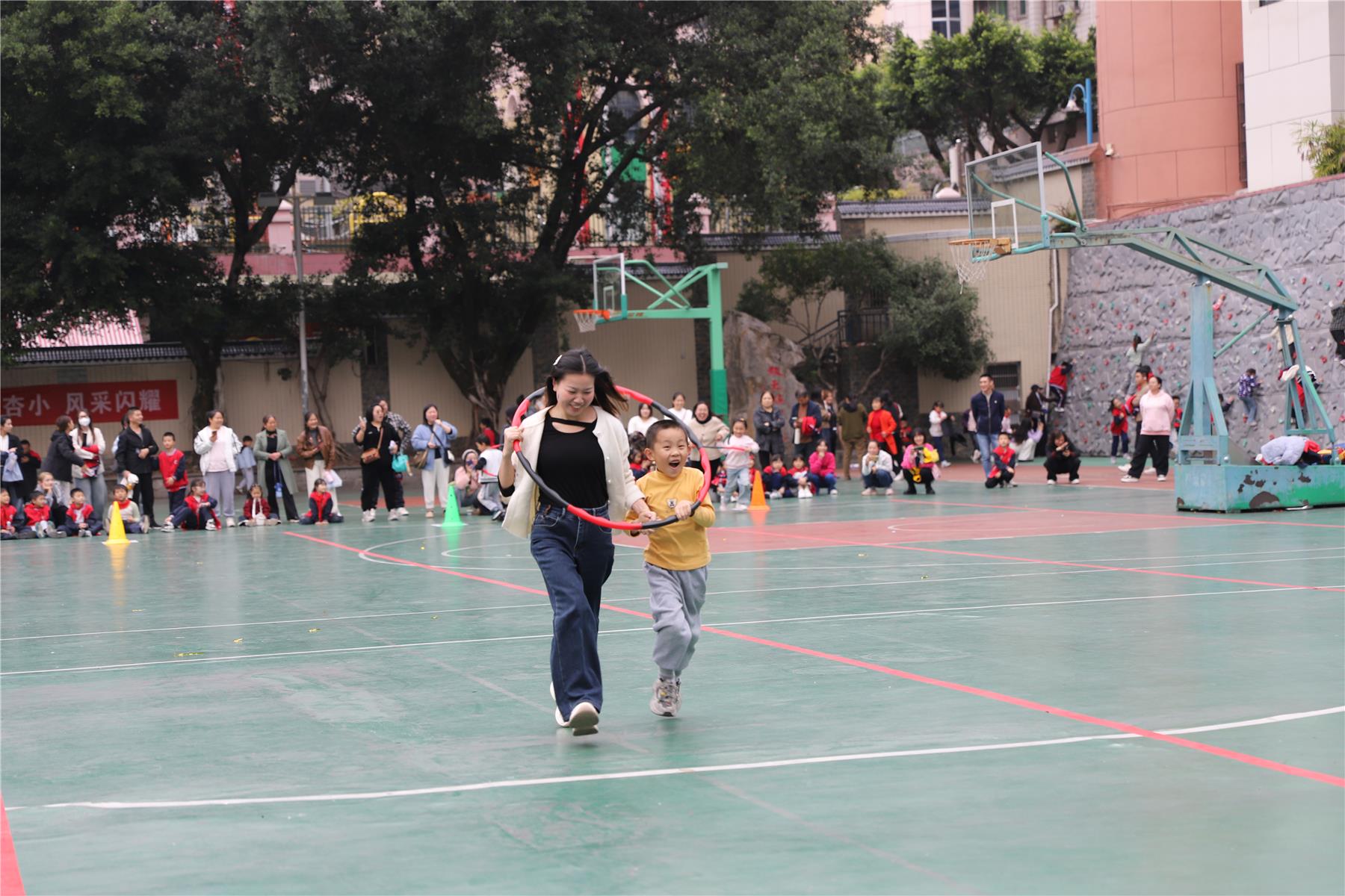 在備受期待的"螃蟹賽跑"環(huán)節(jié),家長(zhǎng)和孩子同在呼啦圈里,手挽手,像螃蟹一樣向終點(diǎn)移動(dòng)。這個(gè)項(xiàng)目既考驗(yàn)配合默契,又充滿趣味性。