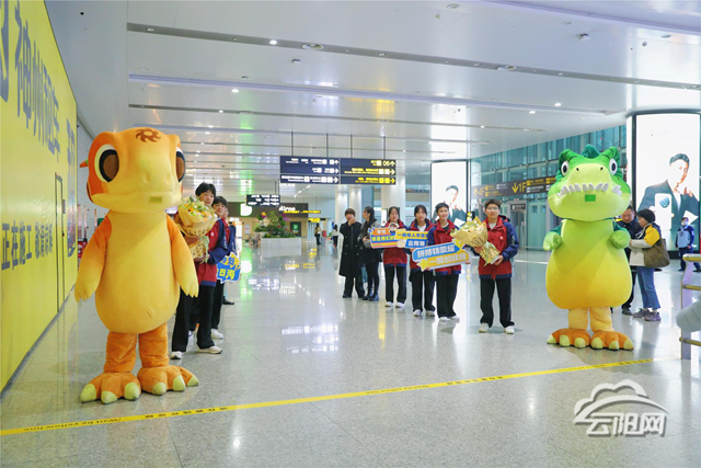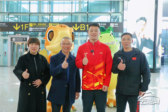 云陽網訊(記者 劉婷 劉琴)11月17日,第十五屆全國運動會(以下簡稱全運會)上為重慶奪得首金的摔跤冠軍李一鳴載譽返鄉,其母校云陽縣紅獅初級中學的師生代表,攜手云陽文旅IP形象“龍寶”與“乖妹”,在重慶江北國際機場為他舉辦了一場溫馨的接機歡迎儀式。