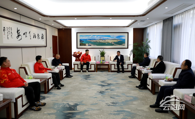 會見中,陳道彬、甘露代表縣委、縣人大常委會、縣政府、縣政協和133萬云陽人民送上鮮花,向李一鳴載譽歸來表示熱烈歡迎,對他在全運會取得的優異成績表示祝賀,并與李一鳴、教練代表團、紅獅初中負責人親切交談,關切詢問其學習、備戰、參賽、訓練、生活等方面情況。陳道彬說,在本屆全運會上,李一鳴以精湛的技術和頑強拼搏的精神,實現破零、奪得冠軍,為重慶代表團爭得了榮譽,為世界龍鄉增添了光彩。希望李一鳴珍惜榮譽、再接再厲,不斷勇攀競技體育新高峰,在各類大賽上再創佳績。同時要做好“傳幫帶”,當好宣傳員和推薦官,為云陽文化旅游體育事業高質量發展貢獻更大力量。