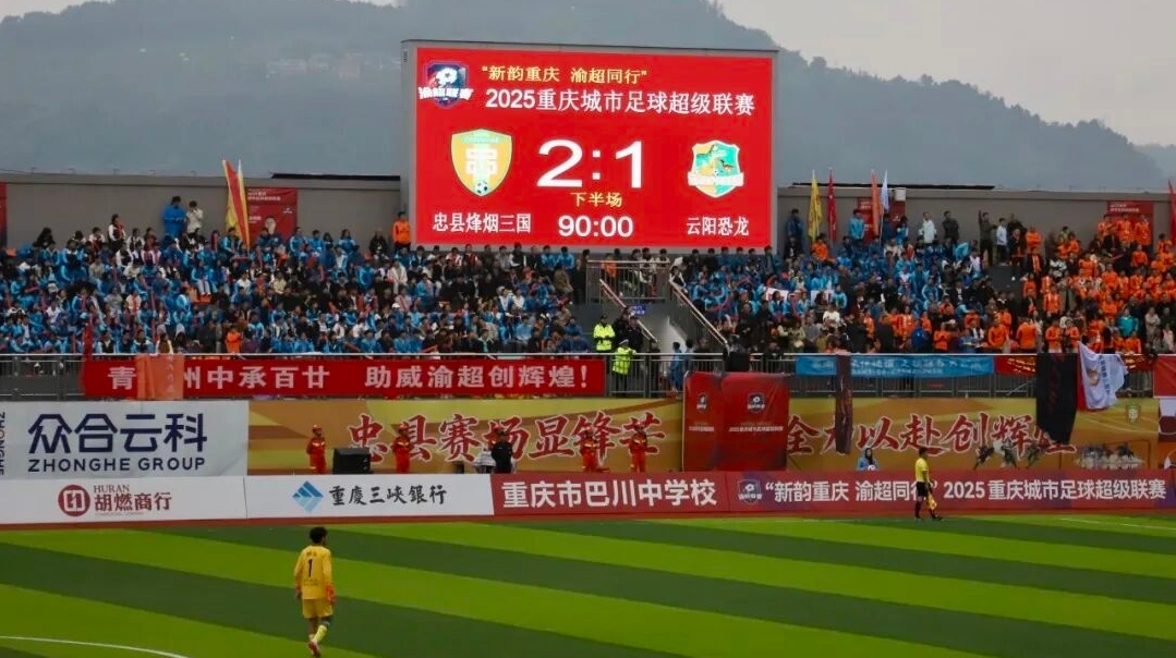 11月8日,在忠縣體育中心的“渝超”聯(lián)賽賽場上,一條寫著“翼德云長齊相聚,渝超賽場好兄弟”的橫幅格外引人注目。