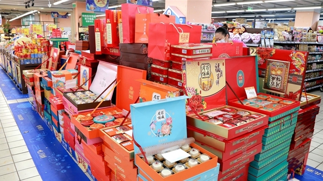 近日,記者走訪發現,城區各大商超已紛紛上架各種口味的月餅,吸引不少市民購買嘗鮮。