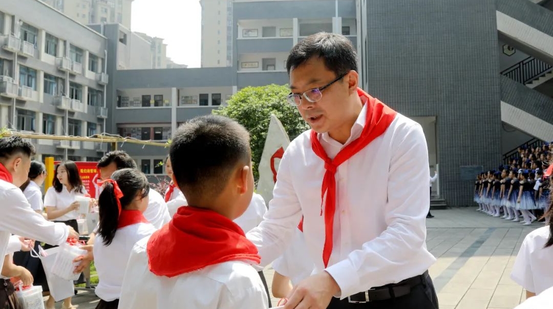 5月31日,平湖中學(xué)開展“粽情端午·放飛童心”活動。該校小學(xué)一年級13名學(xué)生光榮地加入了少先隊隊員。