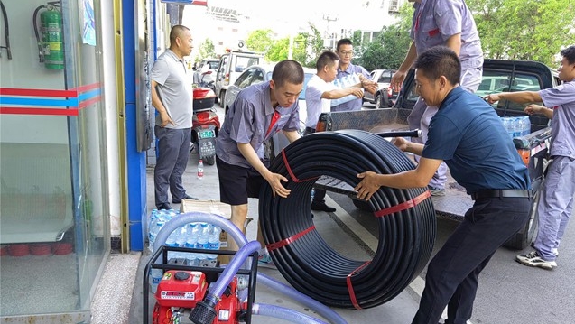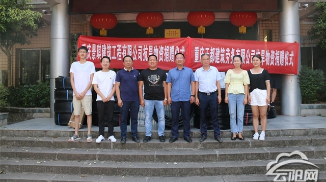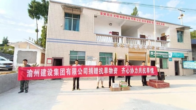 8月24日上午,渠馬鎮本地企業渝州建設集團有限公司滿載著礦泉水、藿香正氣液、風油精等抗旱物資……