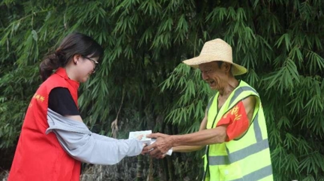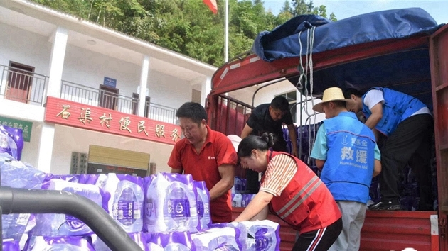 8月23日,團縣委組織青年志愿者為石渠村村民送去“及時水”。