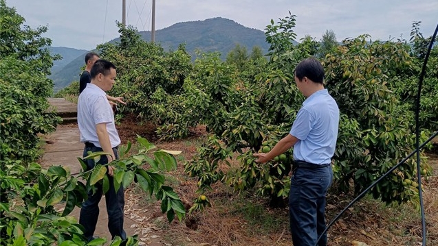 受連日高溫少雨天氣影響,人和街道鳳嶺村的鳳山龍眼基地正遭受較為嚴重的干旱。基地每日組織工人抗旱保果,最大限度保證成熟期龍眼的產量和品質。