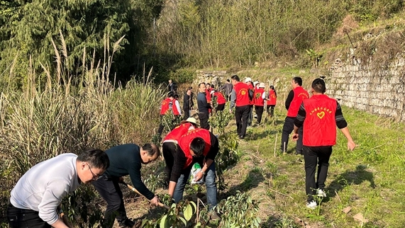 3月11日,堰坪小學組織黨員、團員、少先隊員到長灘河畔開展清河植樹活動。