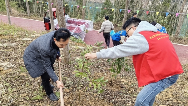 3月12日,天景初中組織部分黨員教師和團員開展了以“我為祖國植十棵樹”為主題的植樹護綠活動。