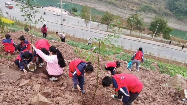 在“3.12”植樹節來臨之際,巴陽小學的志愿者們伴隨著春日的暖陽,來到田間地頭,開展了主題為“植樹護綠 建設美麗中國”的植樹活動。