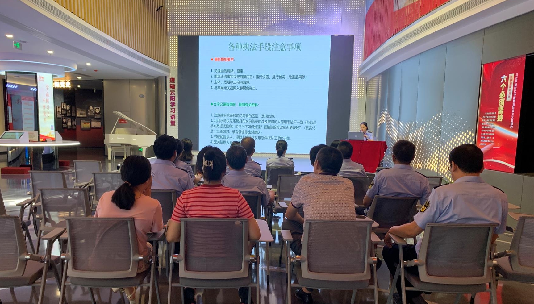 7月31日,縣生態環境局在新時代文明實踐中心開展“德法相伴,文明相隨”行政執法培訓會,進一步提升我縣生態環境系統干部職工法治素養。