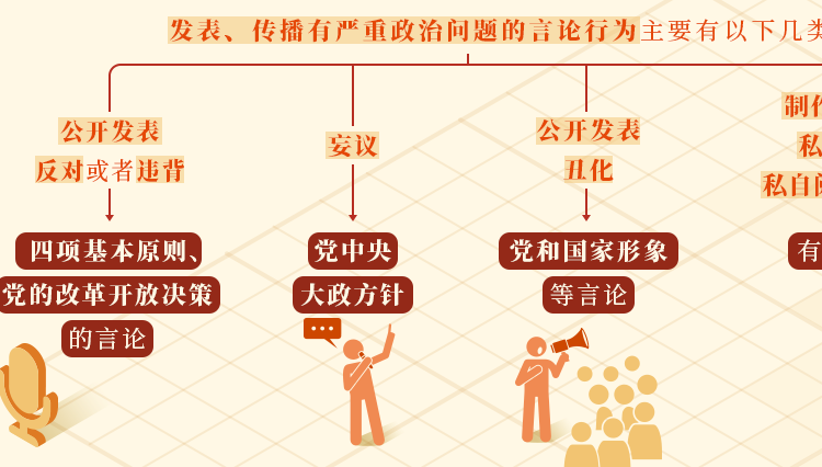 《中國共產(chǎn)黨紀(jì)律處分條例》第五十條、第五十一條、第五十二條對發(fā)表、傳播有嚴重政治問題的言論行為列出負面清單……