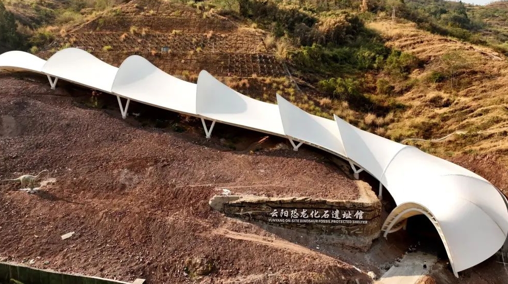 9月28日第四屆“天生云陽”金秋節云陽地質公園恐龍化石遺址館開館活動舉行世界上單體最大的侏羅紀恐龍化石墻向公眾亮相……