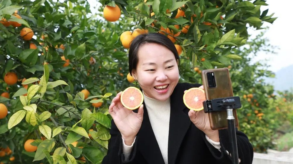 “家人們,這是我們云陽的紅橙,果大飽滿、汁水充足,喜歡吃的家人們可以點擊下面的小黃車下單!”初次見到柳井蘭,她正穿梭在柑橘地里,向觀看直播的網友介紹云陽紅橙的品質、口感。