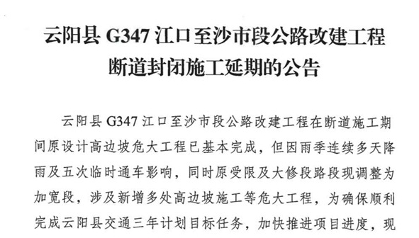 江口至沙市公路改建工程 斷道封閉施工延期一個(gè)月