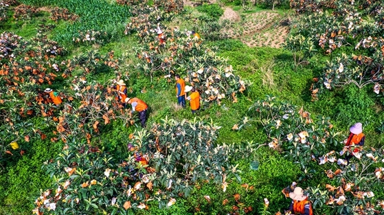 5月25日,位于三峽庫區腹心的云陽縣巴陽鎮五指印江枇杷園內,500余畝白玉枇杷迎來集中采收期