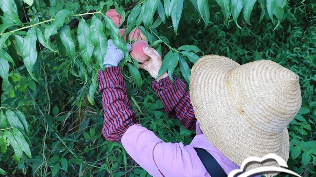 渠馬鎮渠富村的500畝秋彤桃園迎來豐收季,飽滿紅潤的桃子掛滿枝頭,果香四溢。