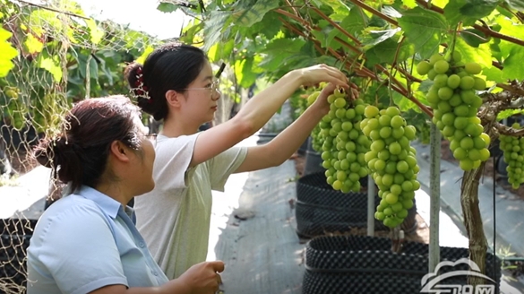 八月盛夏,葡萄飄香。鳳鳴鎮馬軒村多集合生態農業發展有限公司的葡萄園里,“陽光玫瑰”葡萄迎來豐收季,累累碩果掛滿藤蔓,吸引眾多游客前來體驗采摘樂趣。