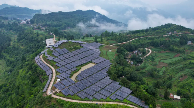 仲夏清晨,寶坪鎮鳳凰村的荒坡上,村民李樹平揮鐮除草,陽光灑在光伏矩陣上,泛起粼粼波光。