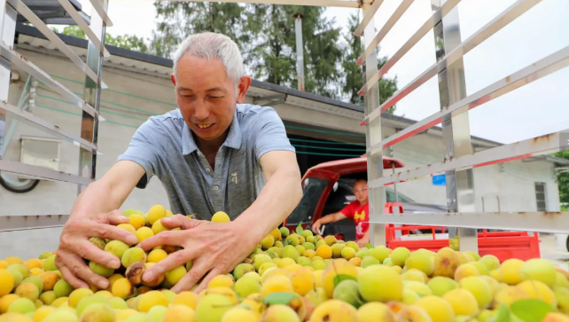 六月仲夏云陽泥溪鎮的3000余畝青梅迎來豐收季與往年不同的是今年的采摘現場上演著一場傳統農事與現代科技交融的生動圖景
