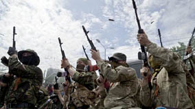 親俄武裝抵制烏克蘭大選 朝天鳴槍開裝甲車游行