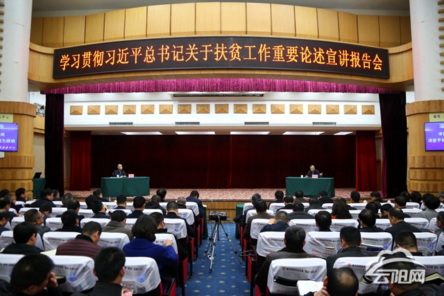 云陽網訊(記者 楊梅娜 丁齊)3月5日,云陽召開學習貫徹習近平總書記關于扶貧工作重要論述宣講報告會,幫助全縣干部群眾深學篤用習近平總書記關于扶貧工作重要論述、最新指示和黨中央關于脫貧攻堅工作的決策部署,凝聚起打贏打好脫貧攻堅戰的強大合力。