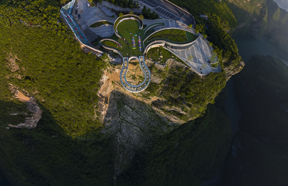 俯瞰云陽龍缸云端廊橋。云陽縣委宣傳部供圖 華龍網發