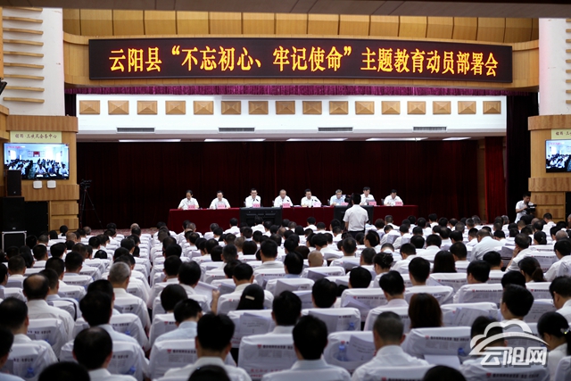 云陽網訊(記者 李充 劉雪梅)9月10日,云陽“不忘初心、牢記使命”主題教育動員部署會議召開。會議強調,全縣上下要更加緊密團結在以習近平同志為核心的黨中央周圍,深入學習貫徹習近平總書記視察重慶重要講話精神,全面把握“守初心、擔使命,找差距、抓落實”的總要求,從嚴從實抓好主題教育各項工作,奮力開創云陽各項事業發展新局面,以優異成績迎接新中國成立70周年。