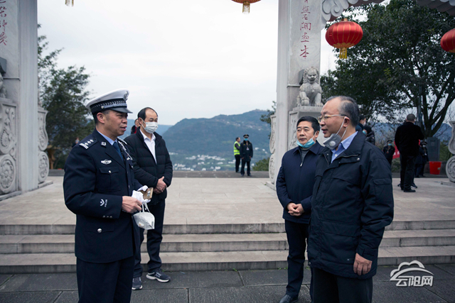 云陽網(wǎng)訊 (記者 劉興敏 唐斌)“新年好!給大家拜年了!”1月25日,正值大年初一,早上8點(diǎn)多,縣委書記張學(xué)鋒就來到登云梯,看望慰問執(zhí)勤民警、文旅委以及市政執(zhí)法人員等,給他們送去節(jié)日祝福,并與執(zhí)勤人員一道,宣傳“新型冠狀病毒感染”有關(guān)疫情知識,勸導(dǎo)市民少出門,不集聚,以免感染病毒。