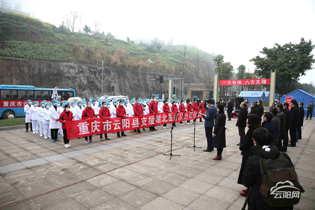 云陽(yáng)網(wǎng)訊(記者 鄧?yán)?趙曉龍)2月25日上午,云陽(yáng)首支支援湖北醫(yī)療隊(duì)出征,全力支援湖北省孝感市新冠肺炎疫情救治工作。縣委書記張學(xué)鋒,縣委副書記、縣長(zhǎng)覃昌德等為醫(yī)療隊(duì)送行。