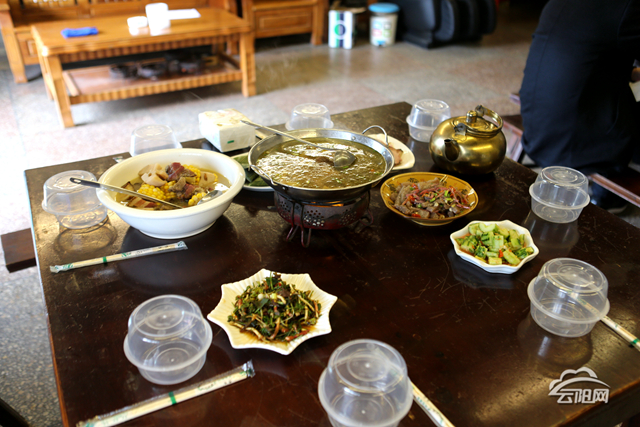 中午,張學鋒一行走進景區(qū)附近一農(nóng)家樂,品嘗鄉(xiāng)村菜。胡蔥子、折耳根、包谷粑、高山臘肉……散發(fā)淡淡清香的農(nóng)家綠色食材挑逗舌尖味蕾。